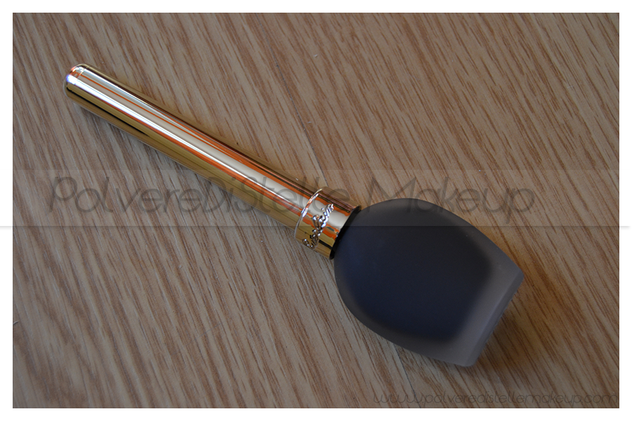 Piu’ che ad un eyeliner somiglia molto di piu’ ad un gioiello. Il prodotto é racchiuso in un’ampolla in vetro satinato con tappo a vite estremamente lungo dal momento che rappresenta il manico del pennellino.