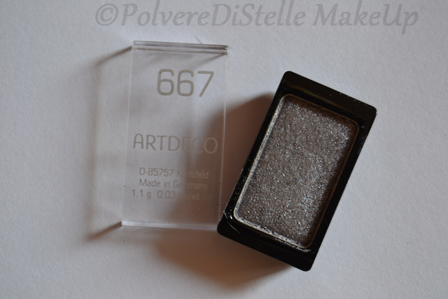 Un colore carino si,ma anche questo banale e piuttosto sfruttato.Si tratta di un grigio/lilla,molto shimmer (troppo shimmer),che per una persona che ha scelto come preferenza “colori chiari” non e’ proprio il massimo.ArtDeco e’ un brand famoso e valido,ci mancherebbe,ma l’ombretto non mi sembra nemmeno troppo scrivente.In ogni caso vi faro’ sapere quando lo recensiro’.Il valore e’ comunque 5.80 euro per 0.8 grammi di prodotto (pochissimi davvero pur trattandosi di un refill).