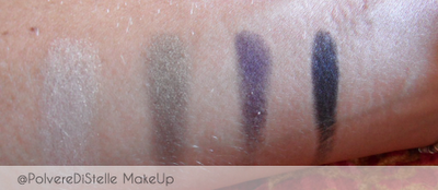 Anche questi ombretti sono parecchio pigmentati,io nello swatch ho passato il dito sulla cialda molto leggermente.Inoltre si sfumano davvero bene,cosa che mi rende entusiasta del mio acquisto,fin dalla prima palette,la n.01,con cui mi sto trovando divinamente.