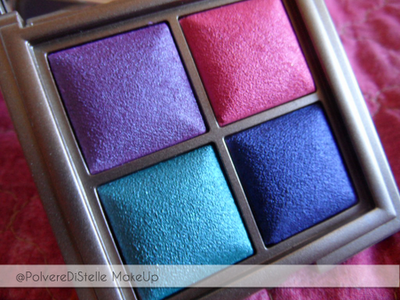 La seconda palette che ho scelto e’ la 05 (Sensational Cool Shades),  quattro colori apparentemente molto accesi ma molto molto belli se abbinati insieme.Si tratta di un lilla con riflessi rosa,un rosa acceso shimmer,un turchese shimmer che sfumato e’ a dir poco divino e un blu “elettrico” con riflessi rosa che mi ha fatto letteralmente innamorare.