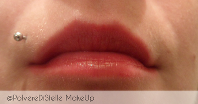 Come si puo’ ben vedere dalo swatch sulla mano,il colore e’ molto soft e brillante,indossato lascia le labbra leggermente colorate e molto lucide,senza eccedere dal momento che si tratta di un rosso.