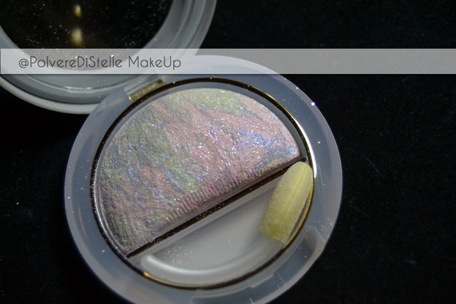 Il secondo e’ il n.17 Celeste Patchwork,consistente in una cialda policromatica divisa a settori,con tonalita’ azzurro/celesti/blu,utilizzabili mescolate o singolarmente.L’effetto’ e’ davvero molto particolare e nella foto sottostante,potete vedere gli swatches,che faro’ in maniera piu’ dettagliata quando andro’ a recensirli singolarmente.
