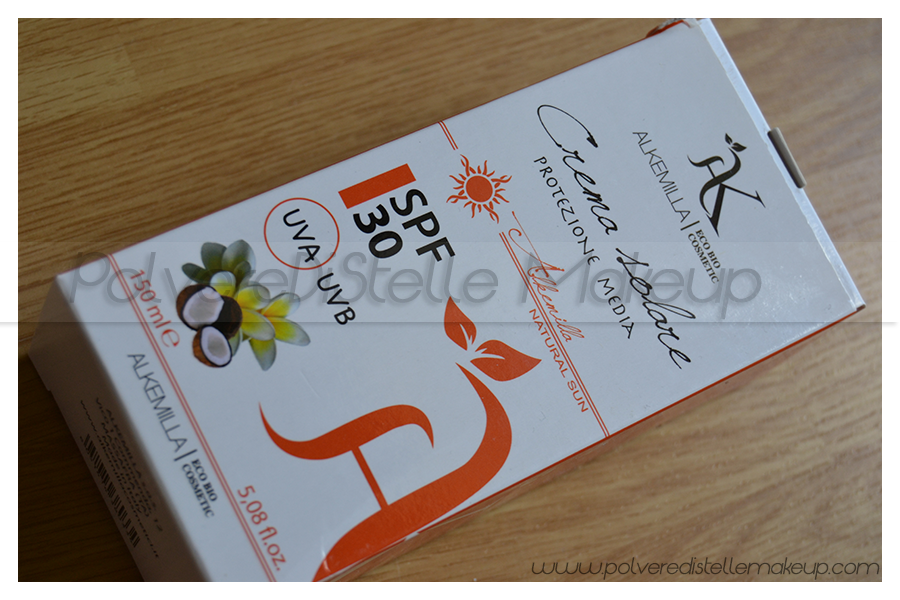 Se seguite il blog, sapete che sono molto attenta nei confronti dell’esposizione solare. Essendo estetista mi sta molto a cuore sapere di essere protetta sempre dai raggi Uv per prevenire l’invecchiamento della mia pelle. Prendendo il sole in barca, necessito di protezioni piu’ alte del normale, proprio perche’ il sole riflettendosi sull’acqua risulta ancora piu’ forte e mi scotterei come nulla. Ho scelto pertanto una protezione 30 di Alkemilla anche perche’ per me é la primissima volta che mi avvicino ad un solare “naturale” che non contiene filtri fisici in senso stretto. Vedremo come si comportera’ quando mi esporro’ per le prime volte. Per ora il clima non aiuta, speriamo succeda quanto prima!