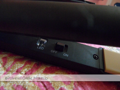All’interno della piastra troviamo poi,l’interruttore ON/OFF e un led che lampeggia nel momento stesso in cui la piastra e’ calda.Un segnale acustico sia all’accensione che una volta arrivata a temperatura,provvede ad avvisarci.La cosa che mi ha lasciato stupefatta e’ stata la velocita’ con cui arriva a temperatura ed e’ pronta all’uso.Non esagero,ci mette davvero MENO DI UN MINUTO!!!