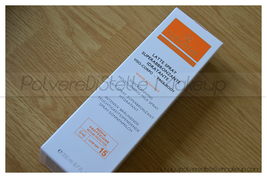 Si tratta di un innovativo latte solare spray, che combina la leggerezza e la rapidità di assorbimento di una microemulsione all’efficacia di una formula estremamente all’ avanguardia, che garantisce una sicura protezione dai raggi solari e nello stesso tempo consente di ottenere una perfetta abbronzatura anche in questo caso,duratura nel tempo. L’Unipertan, assicura una splendida abbronzatura, mentre la vitamina E e il betaglucano presenti nella formulazione, prevengono l’invecchiamento cutaneo, e le proteine del germe di grano idratano e nutrono. Adatto sia per il viso che per il corpo, è il solare ideale per chi va in barca, quindi credo sia proprio perfetto per me. Adoro questo genere di texture perche’ non mi appiccicano e non lasciano quella fastidiosissima sensazione di “unticcio” che sotto il sole risulta dabbero insopportabile, almeno per la sottoscritta. Il fattore di protezione questa volta é 15, quindi medio, e adatto ad esposizioni solari piu’ avanzate, quando per intenderci siamo gia’ leggermente abbronzate e quindi meno a rischio di eritemi. Il prezzo é di 26,20 euro per 200 ml di prodotto.