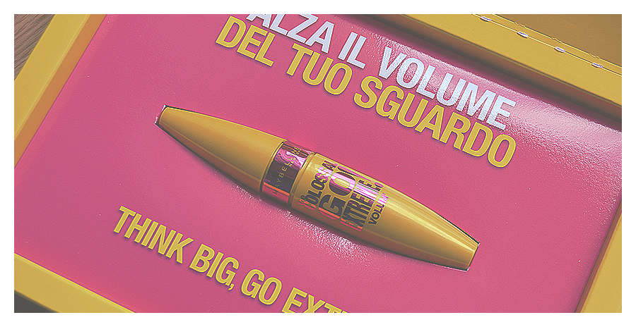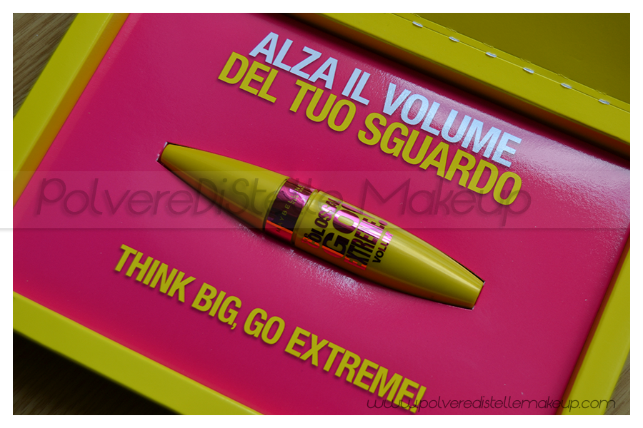 Si tratta del nuovo mascara “Colossal” Go Extreme, che promette di dare volume allo sguardo con un effetto “ciglia finte”, senza incollarle e sopratutto con una facile distribuzione del prodotto grazie allo scovolino di cui parlero’ a breve!