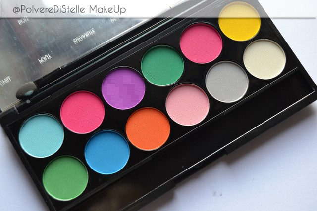 Per quanto riguarda il packaging,beh,ovviamente e’ il classico che caratterizza le palette Sleek,eccezione fatta per le cialde che non sono piu’ quadrettate,ma bensi lisce.Le cialdine sono 12 e in particolare nella V1 Brights,i colori opachi,sono particolarmente accesi e vibranti.Un esplosione di colore,che,con l’estate alle porte,e’ l’ideale per sbizzarrirsi in makeup,un po’ piu’ pazzi del solito.