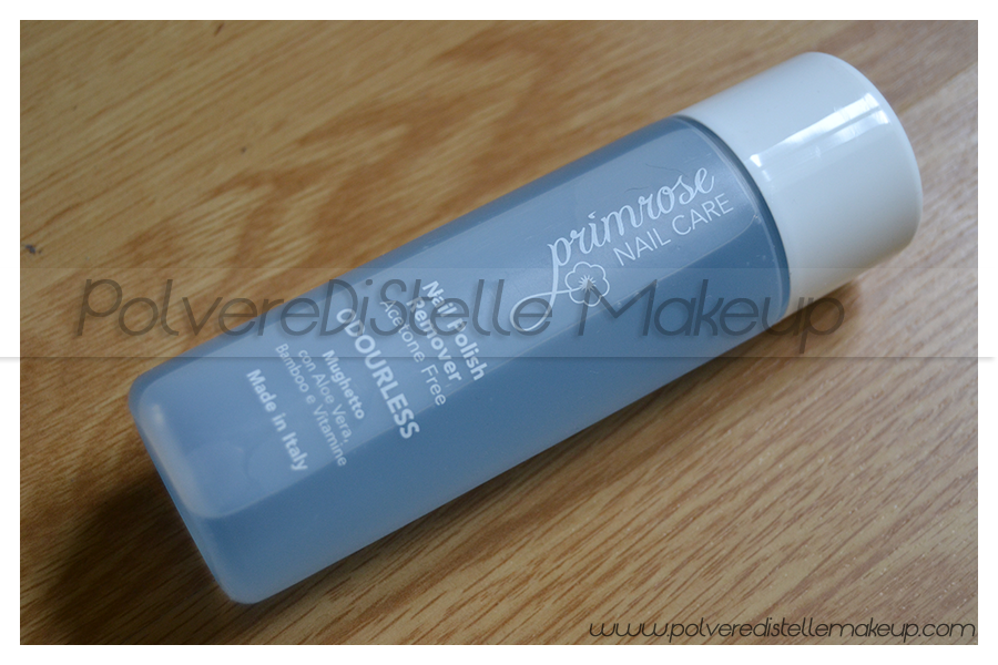 Si tratta di un remover decisamente innovativo, senza acetone, privo di odori sgradevoli e delicato sulle unghie.Permette di rimuovere efficacemente lo smalto dalle unghie senza aggredirle. È arricchito di Aloe Vera, estratto di Bambù e vitamine. Lascia sulle mani un delicato profumo di mughetto. Il prezzo é di 5.00 euro.