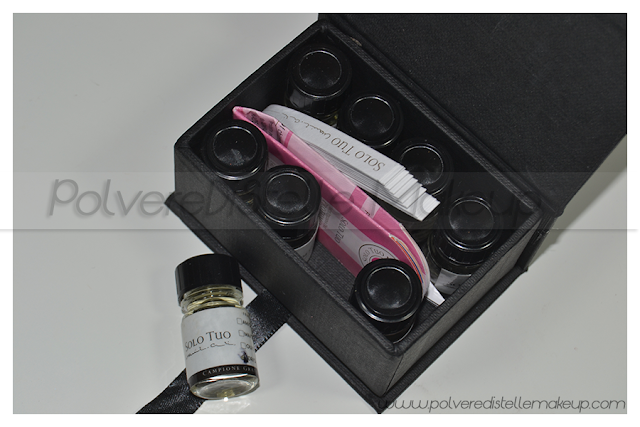 All’interno troviamo 8 piccole ampolline da 2,5 ml,le moullettes a sentir (cartine per sentire i profumi per intenderci),e un foglietto che illustra le varie tipologie di fragranze.