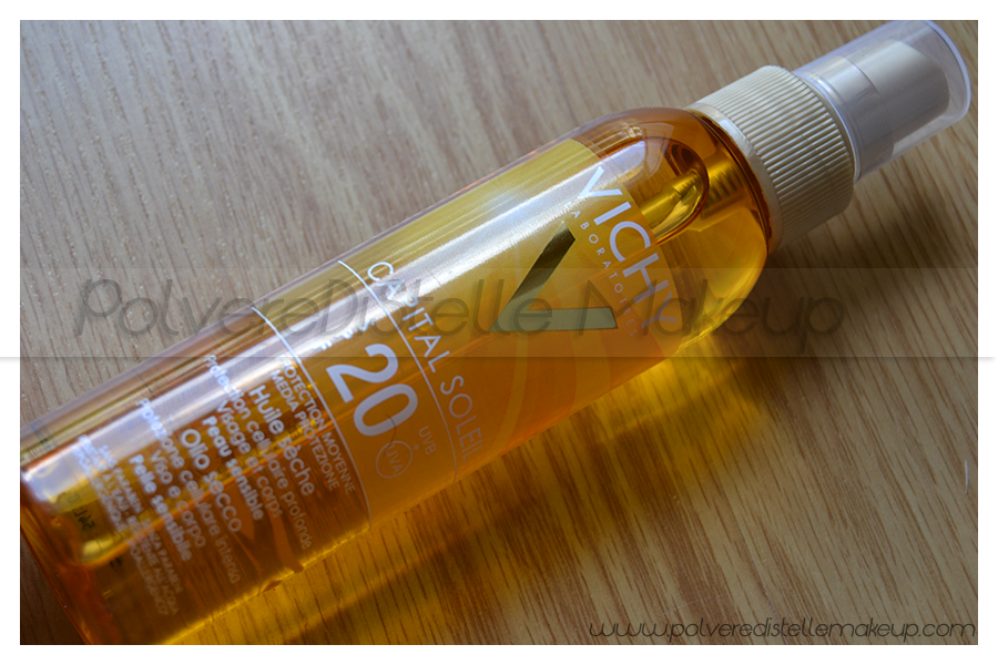 E l’olio secco Capital contenendo il filtro MEXORYL® XL, protegge la pelle a lungo. Pur essendo resistente all’acqua, come per ogni prodotto solare é consigliabile un ‘applicazione frequente, non solo per poteggere la pelle dai raggi solari, ma per mantenere anche l’idratazione e combattere la secchezza data dalla salsedine.