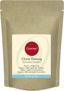 Quertee Tè Oolong – China Oolong è un gradevole e corroborante tè oolong semi-fermentato con foglie semiaperte che da vita ad una piacevole bevanda dal colore arancio chiaro nella tazza. Privo di aromi è perfetto da assaporare durante la giornata.